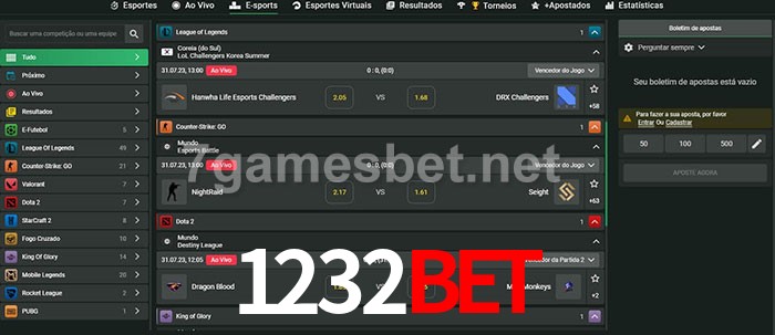 O 1232Bet oferece uma grande seleção de opções de apostas em e-sports com probabilidades competitivas